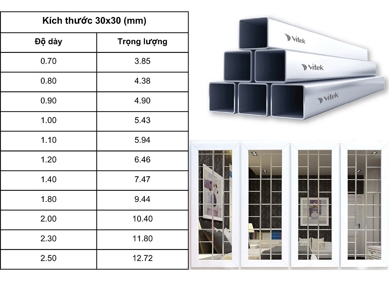 Bảng tra trọng lượng thép hộp vuông Vitek