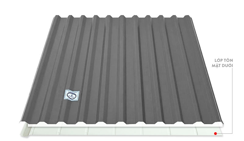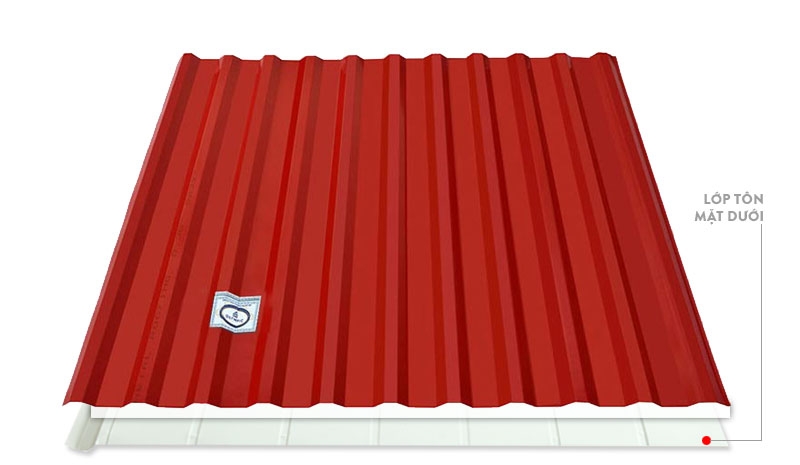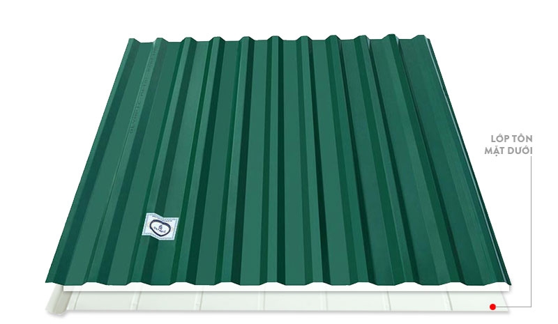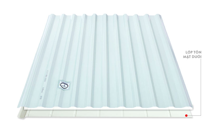 + Lớp tôn mặt dưới: lớp cuối cùng sau PU là lớp tôn lót có tác dụng chống cháy, giảm nhiệt và cách âm cho không gian đồng thời làm gia tăng giá trị thẩm mỹ cho không gian nội thất gia đình.